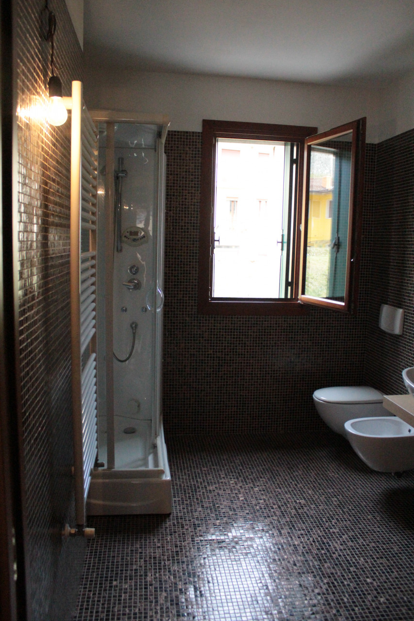 Il bagno è moderno e dotato di doccia multifunzionale, garantendo comfort quotidiano. Le finiture curate nei dettagli ed il rivestimento del bagno in mosaico Bisazza, conferiscono eleganza all'immobile.